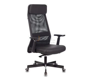 Кресло для руководителя EXPERT BLACK №48610 - объем: 0,181 м3, вес: 16,6 кг, механизм качания без фиксации, ограничения по весу: 120 кг, основание: пластик, каркас: немонолитный, подголовник, подлокотники, поясничный упор, регулировка по высоте, резиновые колеса для паркета, сетка в спинке, в наличии в Сургуте.