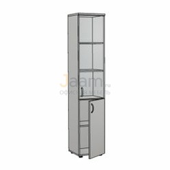 Офисный шкаф узкий со стеклом пр./бронза ЛФ219